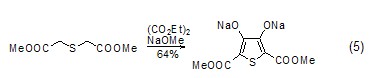 合成噻吩類(lèi)化合物  在堿的條件下,乙二酸二乙酯與β-硫醚二酯類(lèi)化合物可合成噻吩衍生物 (式5)[10],采用類(lèi)似方法也可合成硒代噻吩衍生物[11]。